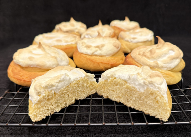 Bake rolls 10 minutes; remove from oven and dollop 2 heaping tablespoons meringue on top of each roll. Spread meringue into an even layer and make signature peak in middle of each roll. Bake rolls 10 - 15 minutes or until internal temperature is 195°F and meringue is lightly browned; remove to rack. Best served on day made. Cover and store extra rolls in refrigerator.
